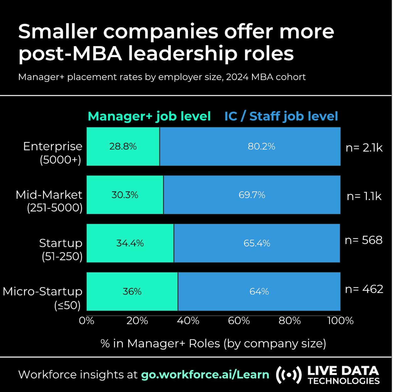 Alex adds, "Our workforce data shows that smaller and mid-sized firms often give MBAs more responsibility early on – even if the title looks the same or lower. In many cases, that trade-off leads to faster growth in the long run."