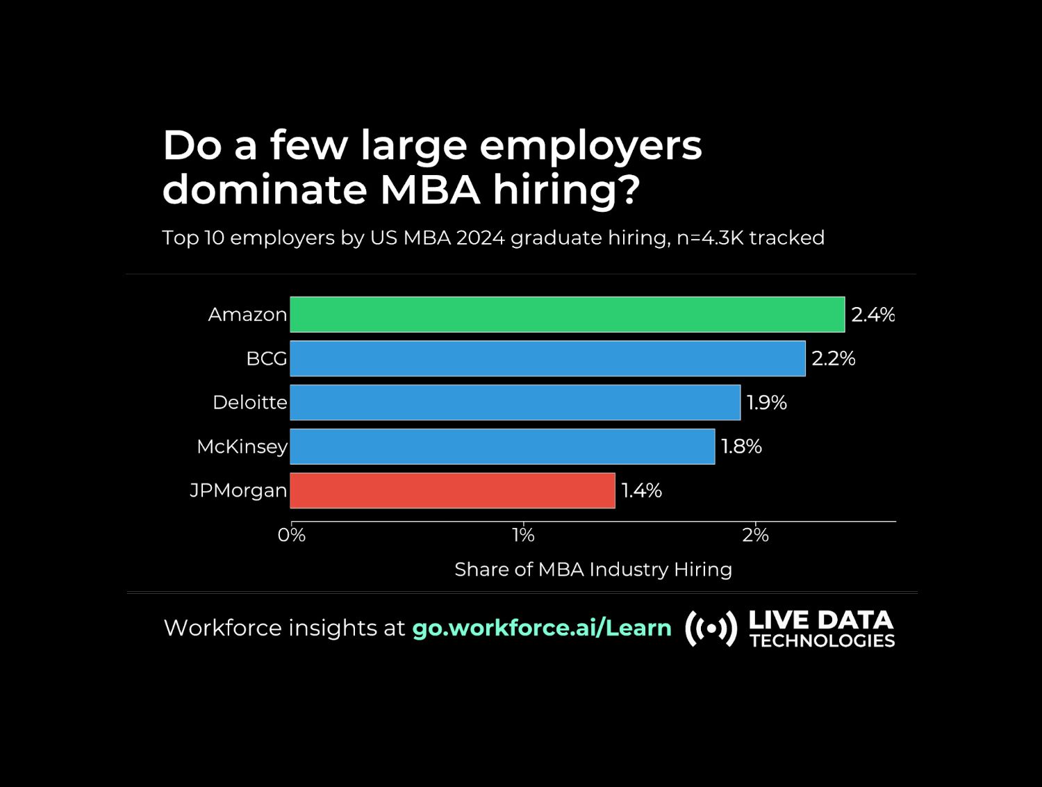 For further insights on where companies are hiring MBA or any other white collar job profession, explore near real-time workforce insights for any company on Workforce.ai (currently in Beta available for free for the first month trial)
